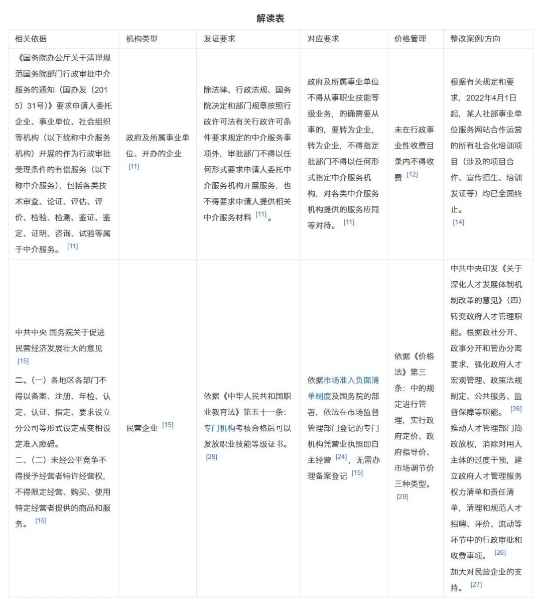 早在2016年,我国就已经进行了人才评价制度改革,第二第(六)项规定:积极培育各类专业社会组织和人才中介服务机构,有序承接政府转,移的人才培养、评价、流动、激励等职能。起草《山寨证书专项治理》文件 ,是人社部有关同志对深化改革认识不到位造成的,并未进行合法性、合规性审查,依据《规章制定程序条例》第二条:未依据《规章制定程序条例》 制定的文件,属于无效文件。